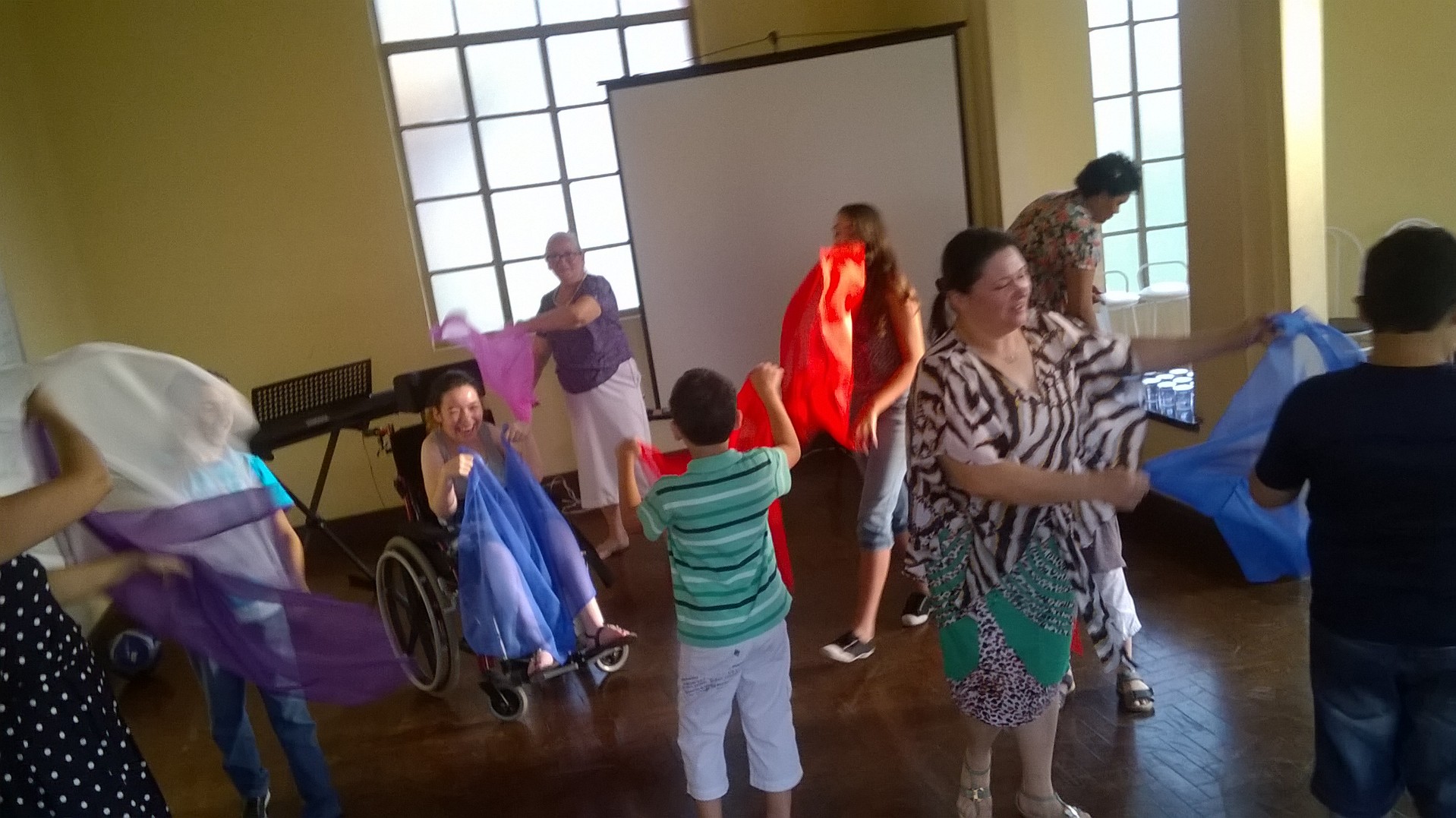A oficina “Outros olhares”, realizada por mim, professora Rosana Olivares e pela assistente social Cyntia Soares, promoveu vivências musicais e socioeducativas que estimularam a exploração e reconhecimento do espaço, despertam para o autoconhecimento, sensibilizam o olhar e a interação com o outro, além de promover a reflexão sobre a inclusão e a exclusão.