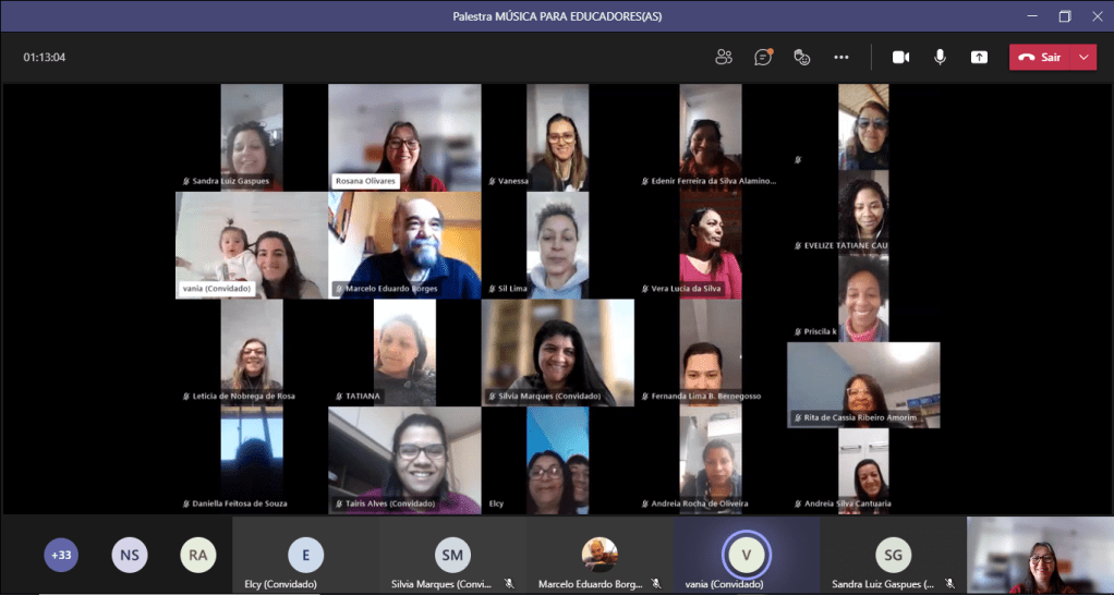 Dia 01 de julho de 2021 os professores e as professoras da EPG Nazira Abbud Zanardi (Guarulhos – SP) encerraram o primeiro semestre letivo com atividades musicais, num ambiente descontraído e, para a maioria dos(as) presentes, trouxe novas ideias para enriquecer o trabalho pedagógico na sala de aula. Refletimos, também, sobre a cultura e os saberes que nossos alunos e nossas alunas trazem consigo, e que devem ser reconhecidos como legítimos e como enriquecedores das nossas vivências escolares.