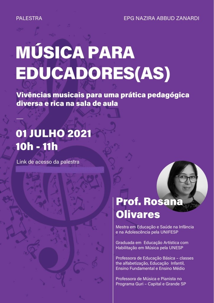 Palestra MÚSICA PARA EDUCADORES(AS) com a Profª Mª Rosana Olivares